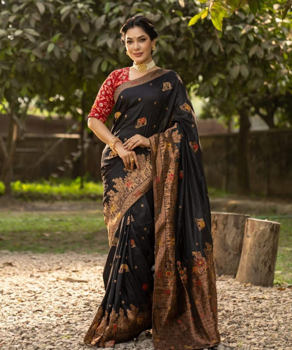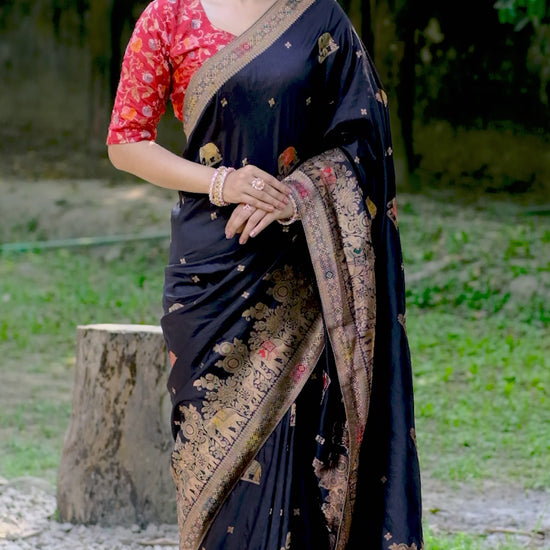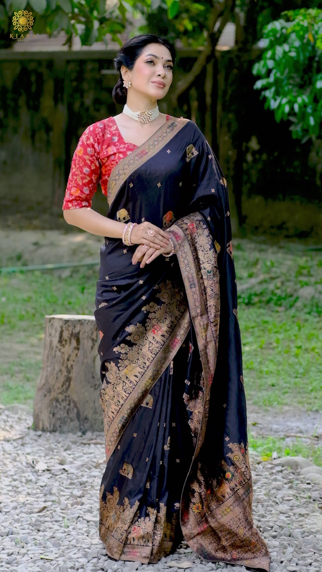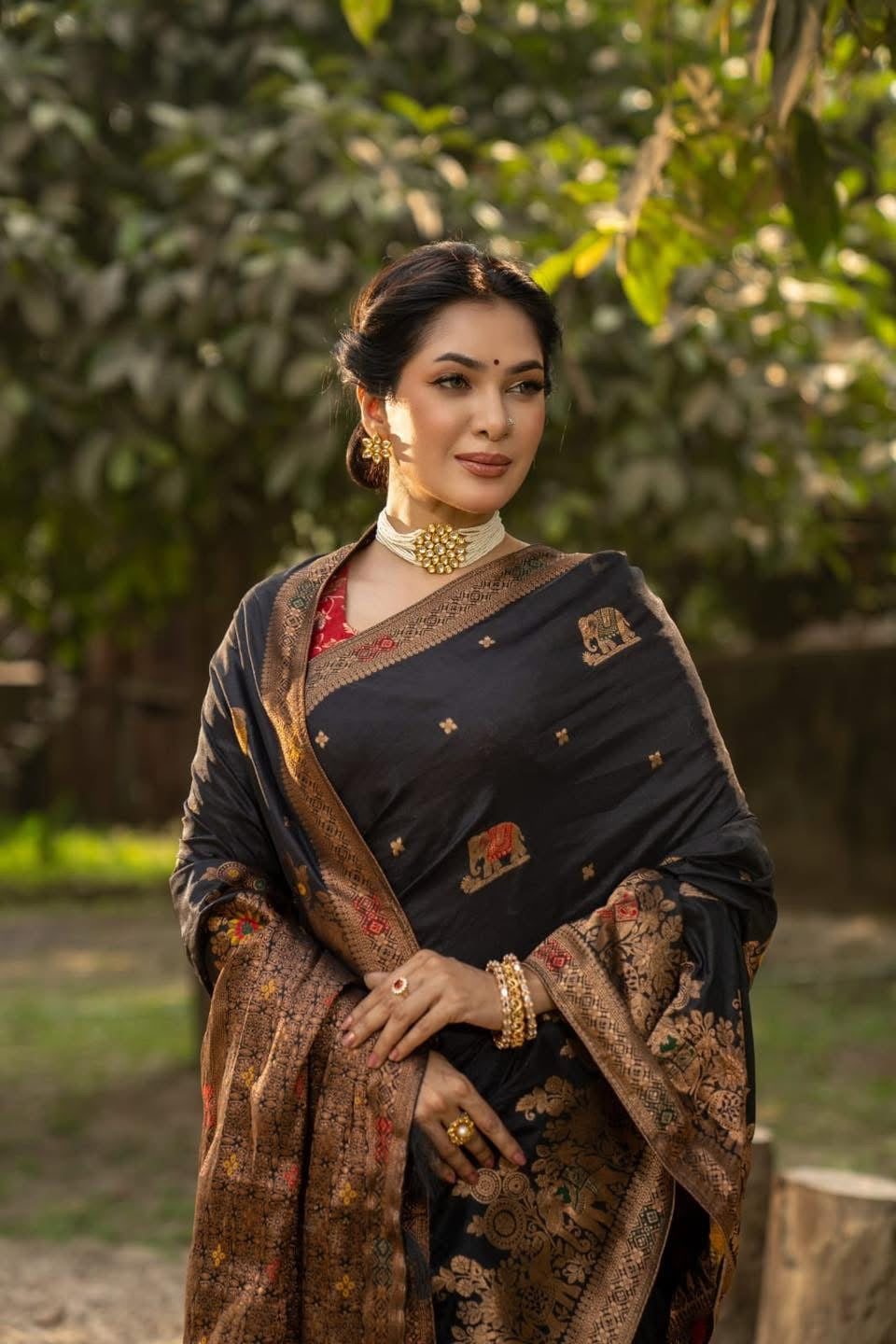 Pure Banarasi silk saree. Hand weave in real gold zari. Imported from India. Elephant motifs all over
