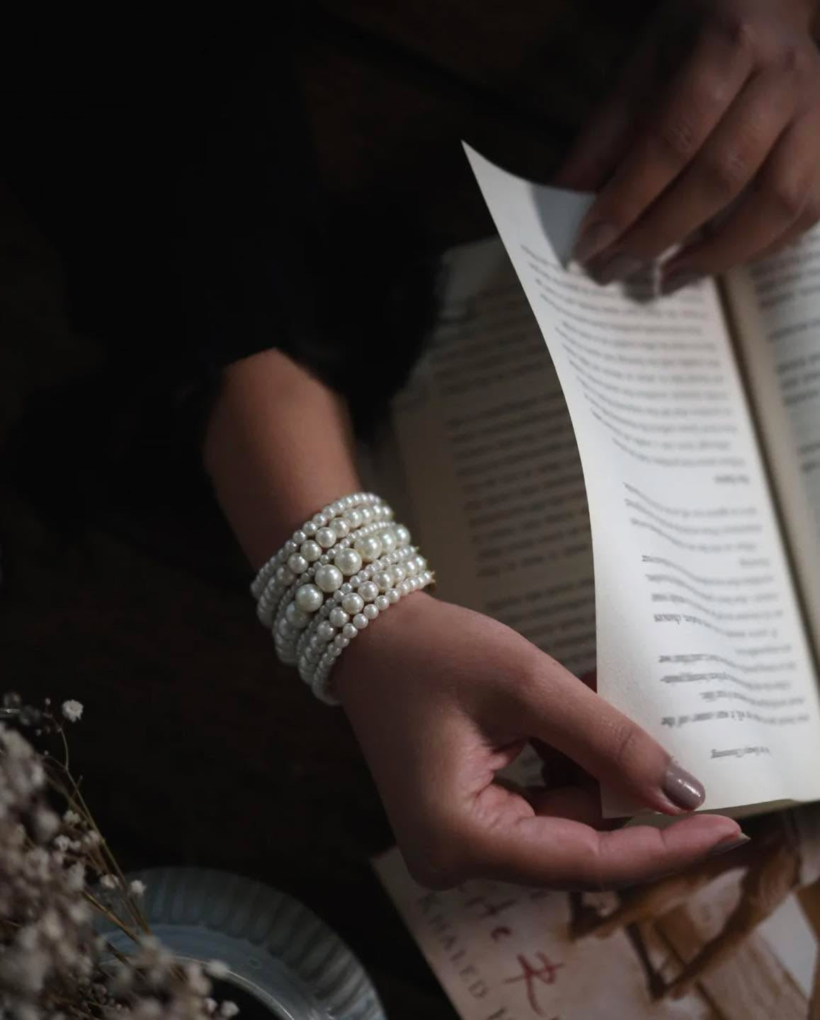 A hand threaded pearl wrist beauty for lovers of pearls. This poetic piece features little details that will grip your heart, with a sophisticated charm. The Nina bracelet is a subtle, and creative piece perfect for your contemporary looks.