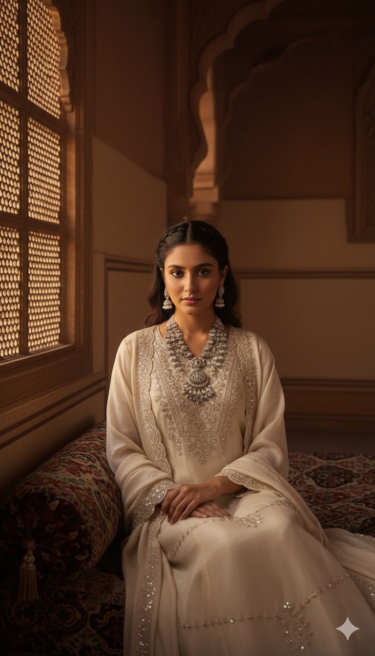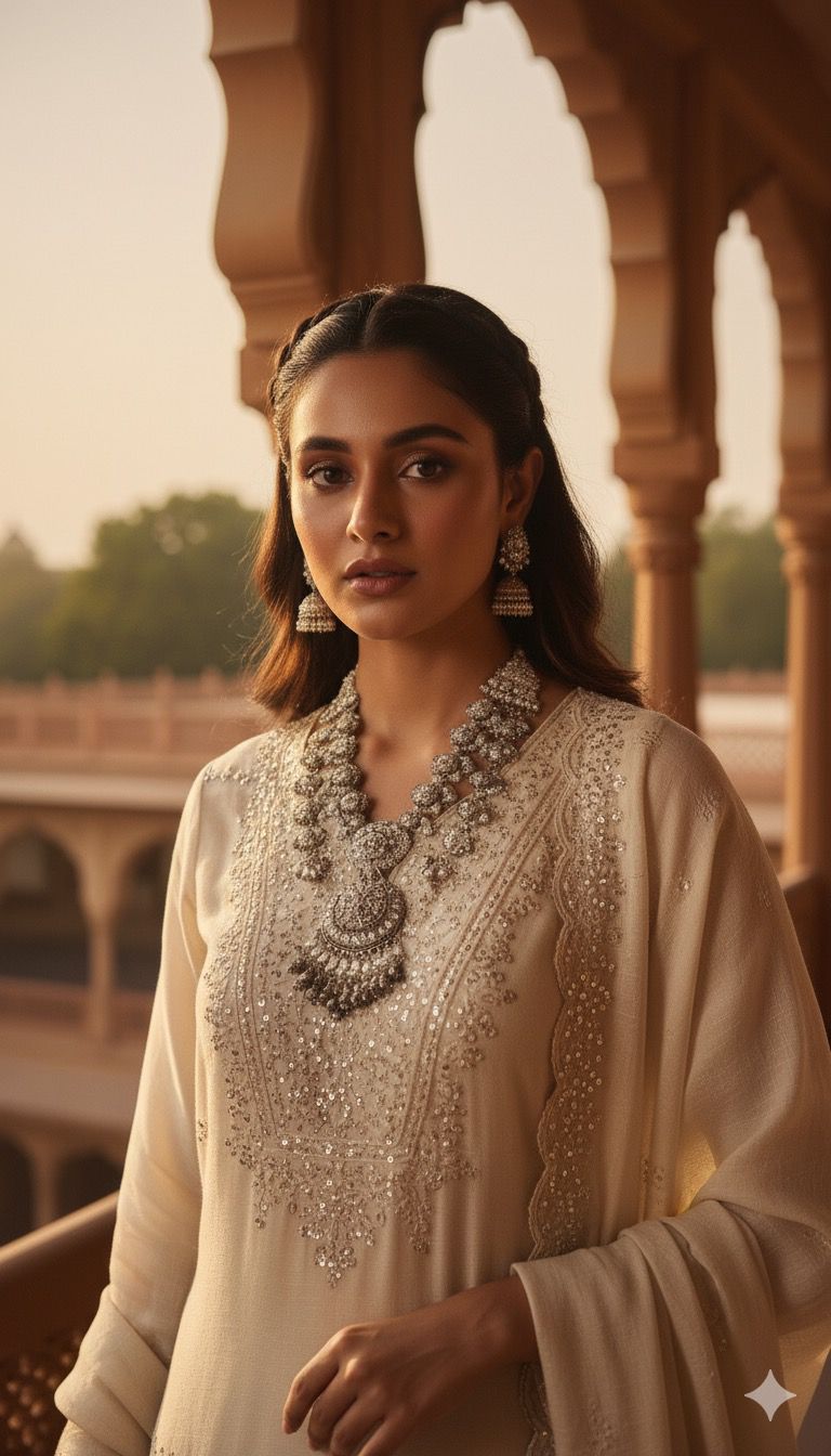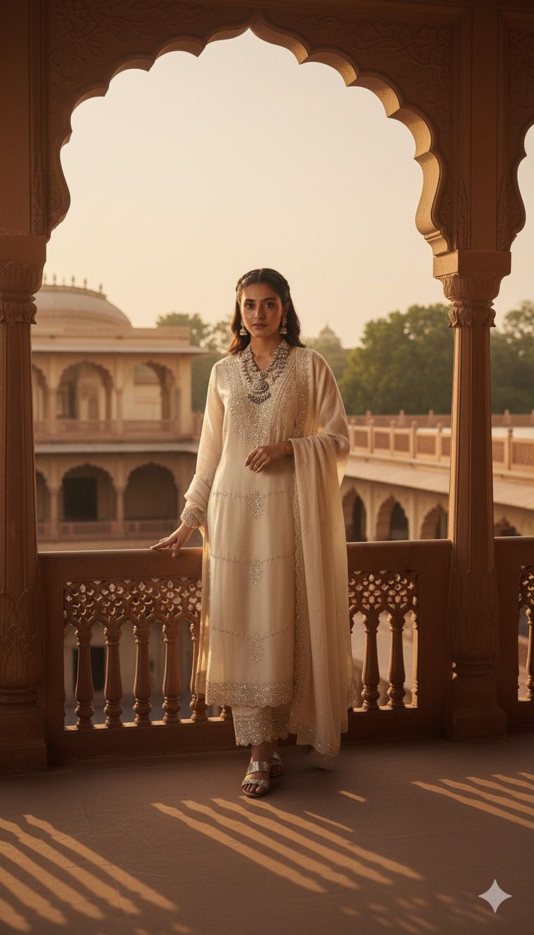 Kameez: Pure Tissue Organza . Hand work all over using sequins and stones.
