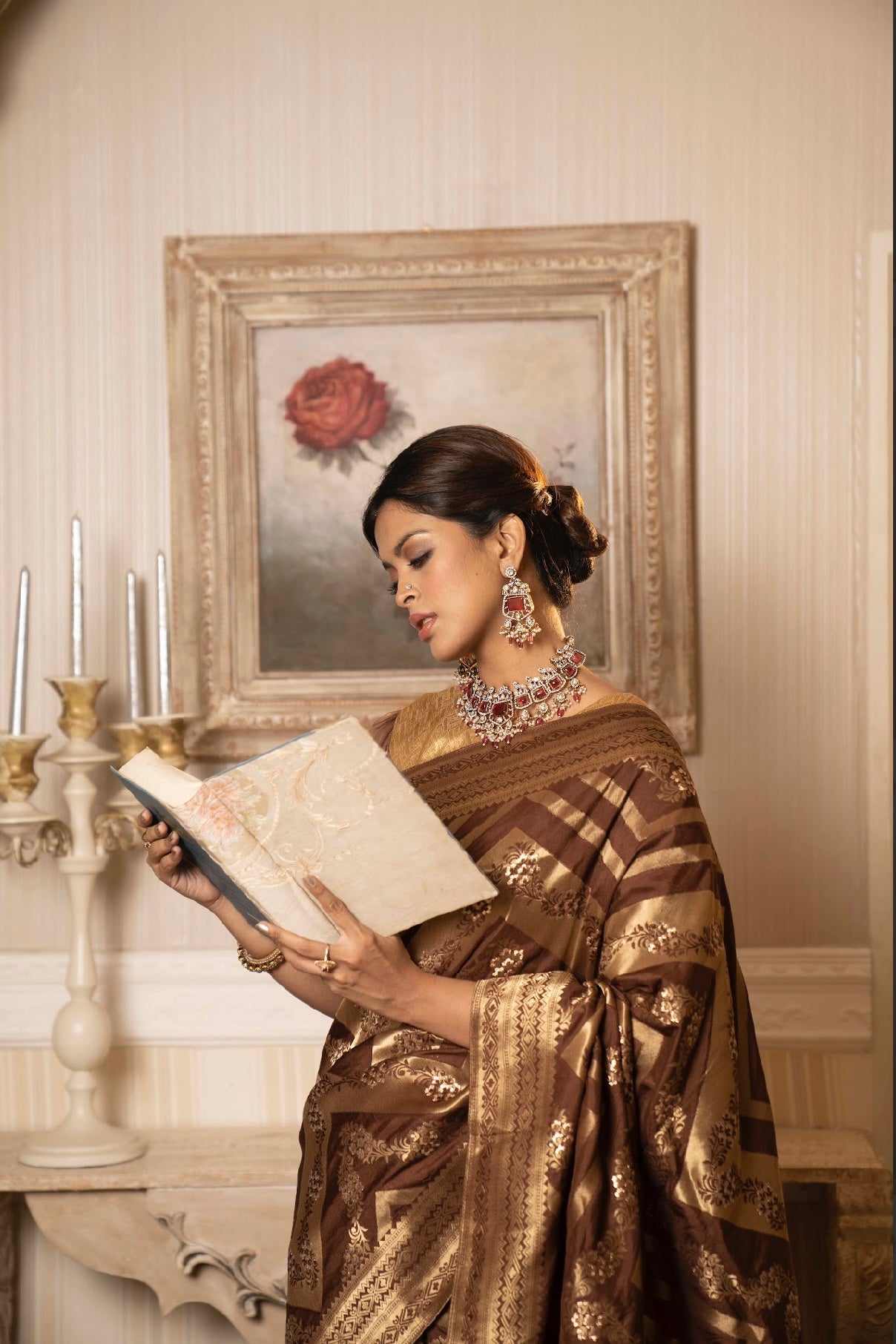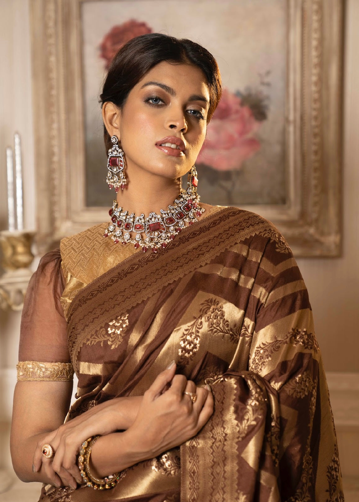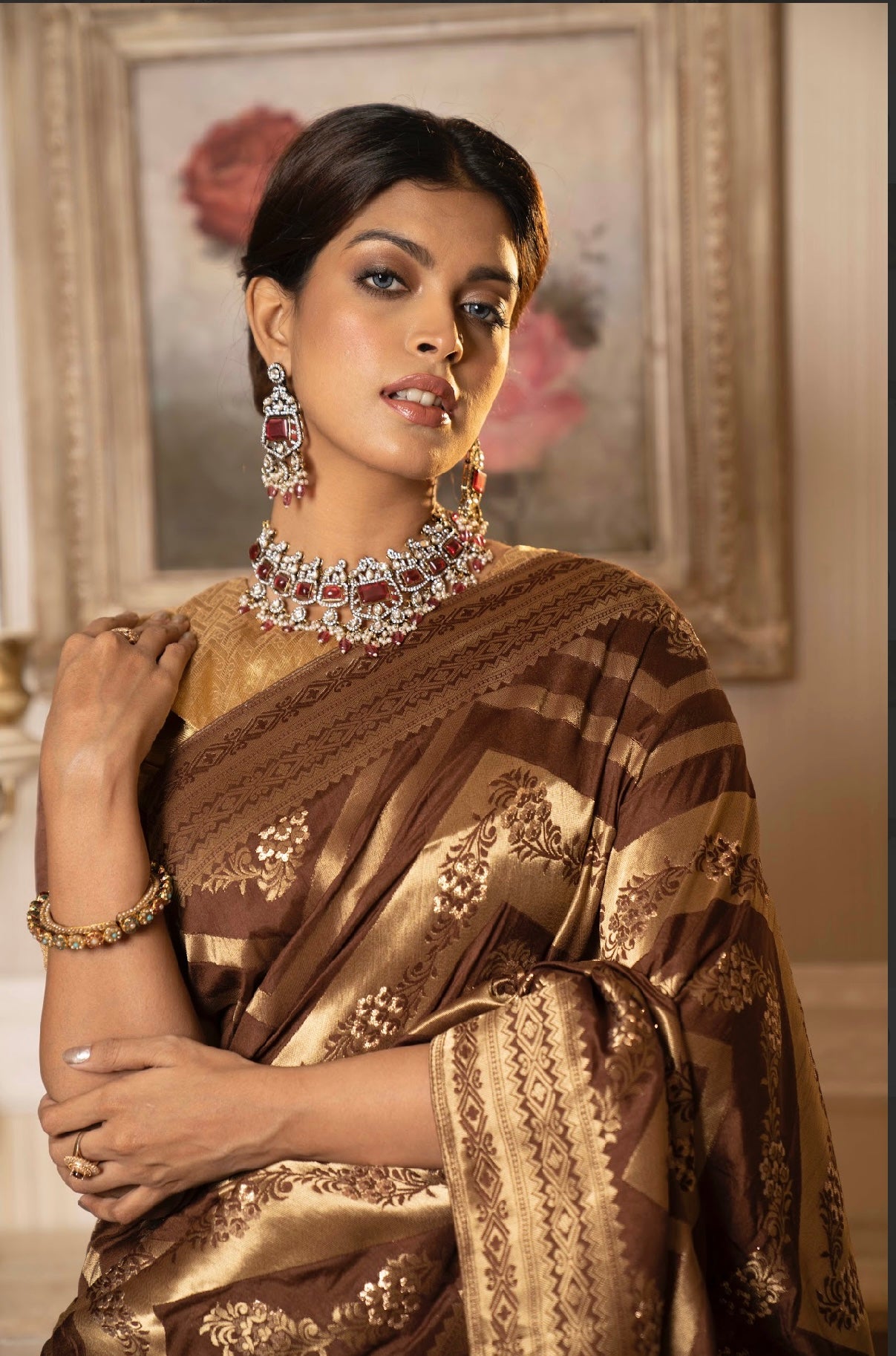 Hand crafted on silver base, gold plated, made out of high end ruby and American diamond stones.
